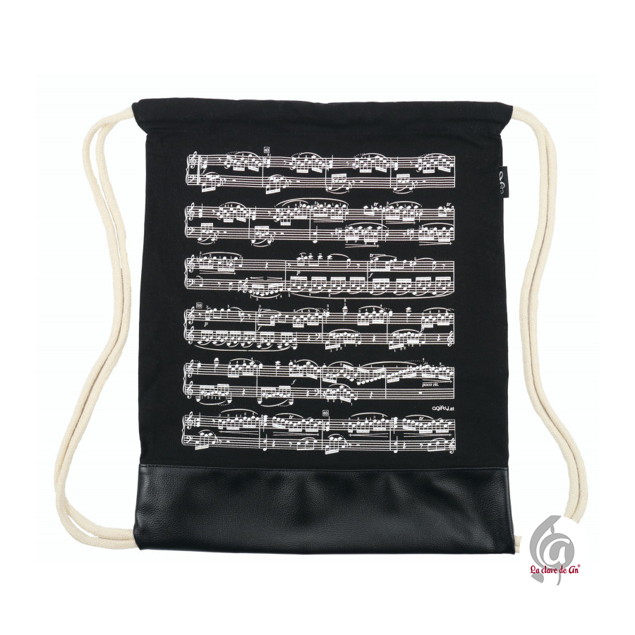 Original mochila tipo saco con un elegante diseño musical de pentagrama. Su cierre con cuerdas permite abrir y cerrar la mochila fácilmente, además de llevarla cómodamente en la espalda. Ideal para transportar libros , partituras, material escolar o pequeños objetos del día a día. Gracias a su estilo moderno y musical, es perfecta para estudiantes de música, docentes, músicos cualquier persona que quiera mostrar su pasión por la música.
