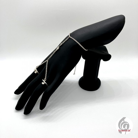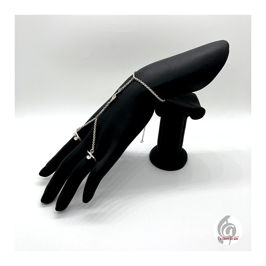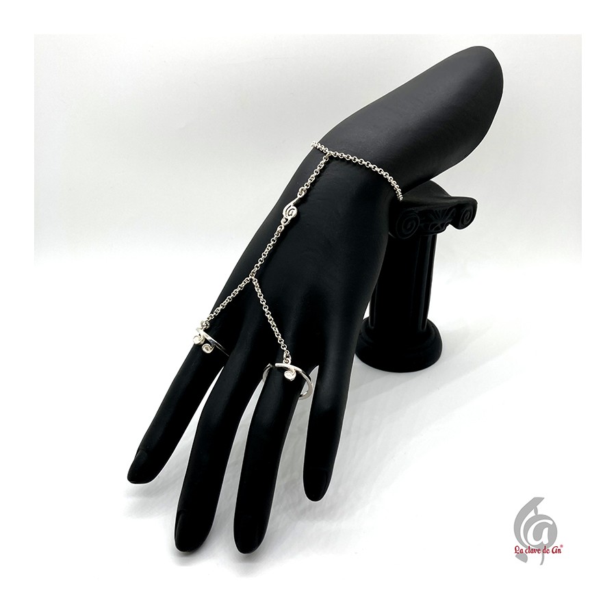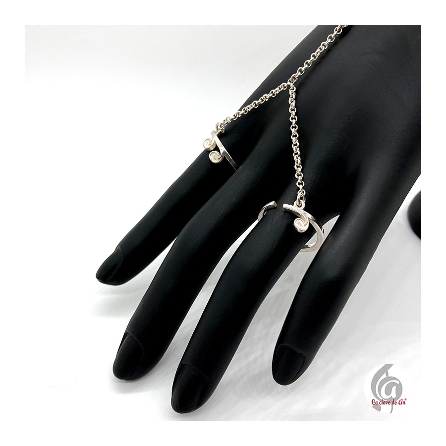 Pulsera de mano en plata de cadena rolo, con dos anillos de aros regulables. Joya hecha de forma artesanal en España. Diseño exclusivo La Clave de An.