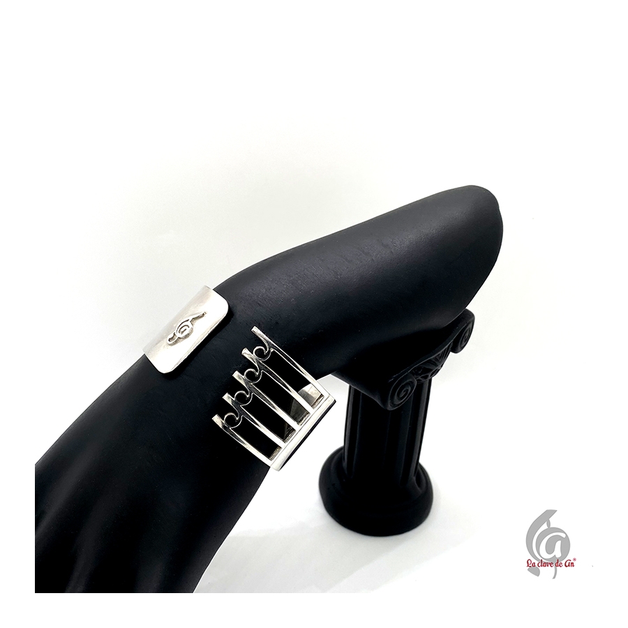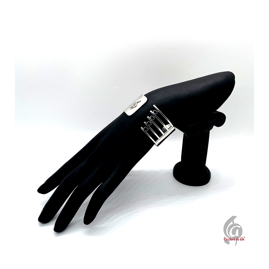 Brazalete de plata y esmalte negro regulable. Joya hecha de forma artesanal en España. Diseño exclusivo La Clave de An.