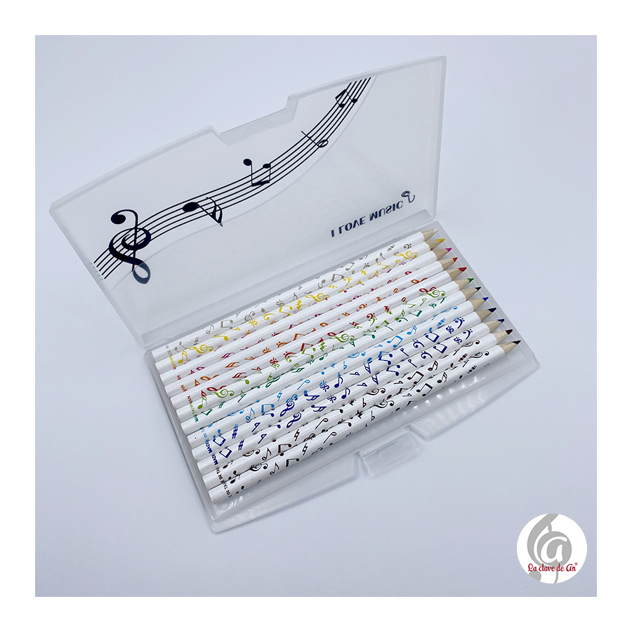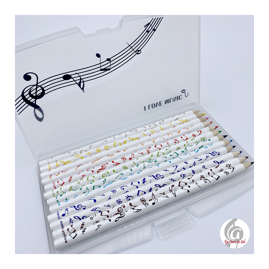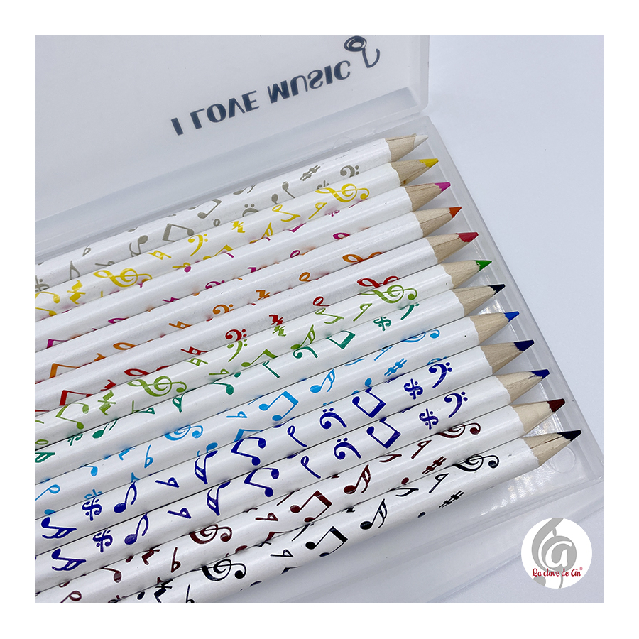 12 lápices de colores con notas musicales