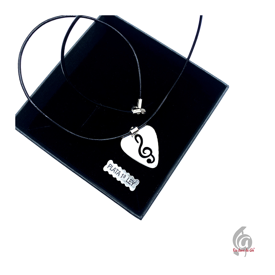 Este original colgante está elaborado en plata y tiene forma de púa, un símbolo muy especial para guitarristas y amantes de la música. En su centro destaca una delicada clave de sol, que representa la armonía, la creatividad y la pasión por el lenguaje universal de la música. Una pieza perfecta par llevar a diario para regalar a esa persona que vive la música con el corazón.