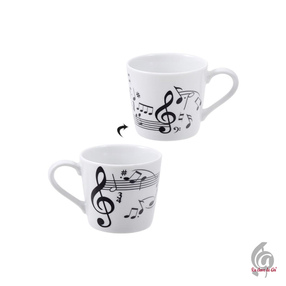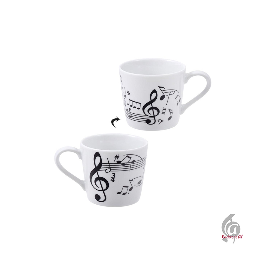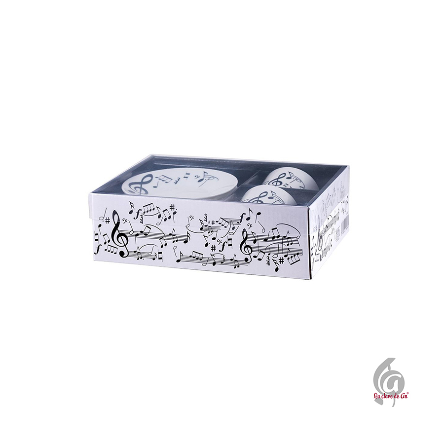 Bonito set de dos tazas de café decoradas con notas musicales, perfecto para disfrutar de un momento especial al ritmo de la música. El conjunto se presenta en una bonita caja decorativa, lo que lo convierte en un detalle perfecto para profesoras/es de música, estudiantes o melómanos.