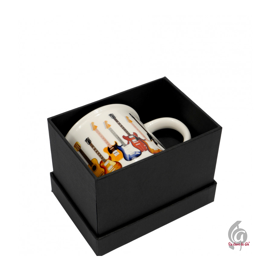 Original taza decorada con un atractivo diseño de guitarras, perfecta para amantes de la música y especialmente para quienes sienten pasión por este instrumento. ideal par disfrutar de café, té, leche o cualquier bebida caliente mientras comienzas el día con inspiración musical. Una taza práctica y con personalidad que aporta un toque musical a cualquier cocina o escritorio.