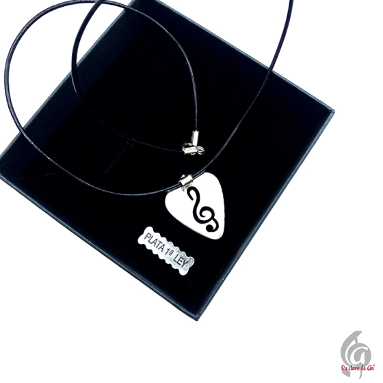 Colgante y cadena de 45cm con diseño guitarra eléctrica, fabricado en metal inoxidable. Se presenta en un elegante estuche metálico decorado con ilustraciones musicales, ideal para regalar en cualquier ocasión especial o para llevar tu pasión por la música siempre contigo.