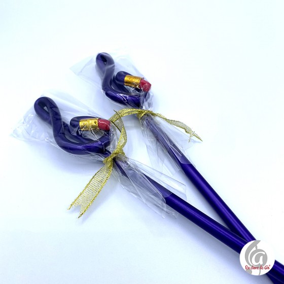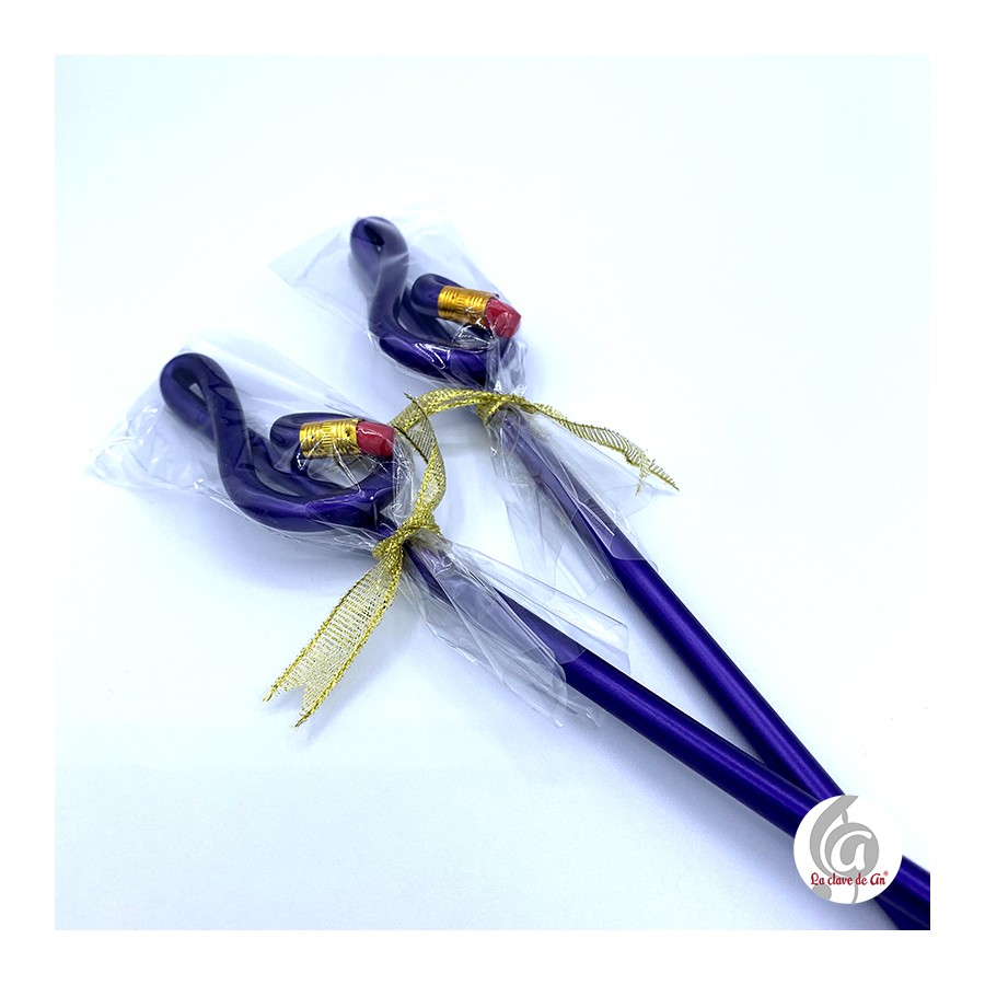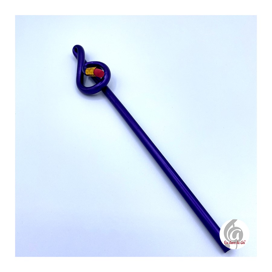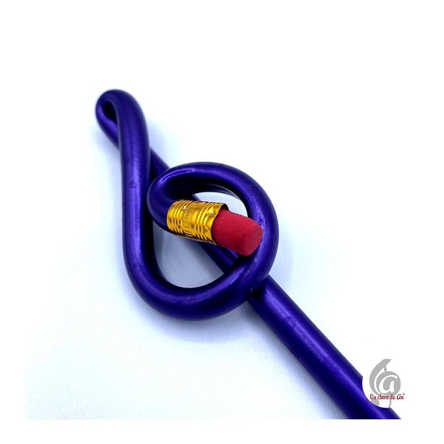 Lápiz de madera violeta con forma de clave de sol. Suave escritura y gran durabilidad.