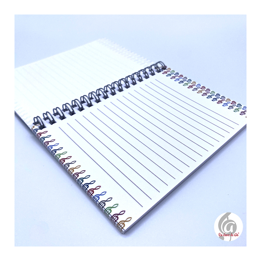 Práctica libreta tamaño A6 decorada con un elegante diseño de claves de sol de colores. Perfecta para anotar ideas, recordatorios, listas o pequeñas notas del día a día. Su tamaño compacto lo hace ideal para llevar en el bolso, mochila o carpeta, permitiendo tener siempre a mano un espacio para escribir. Un accesorio útil y con estilo para amantes de la música.