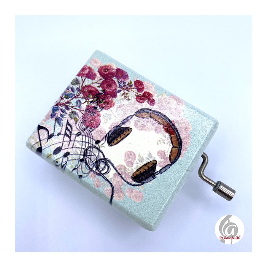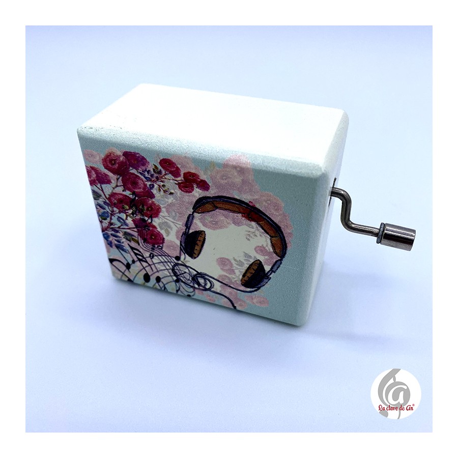 Caja de música de madera con motivos musicales y una bonita melodía.