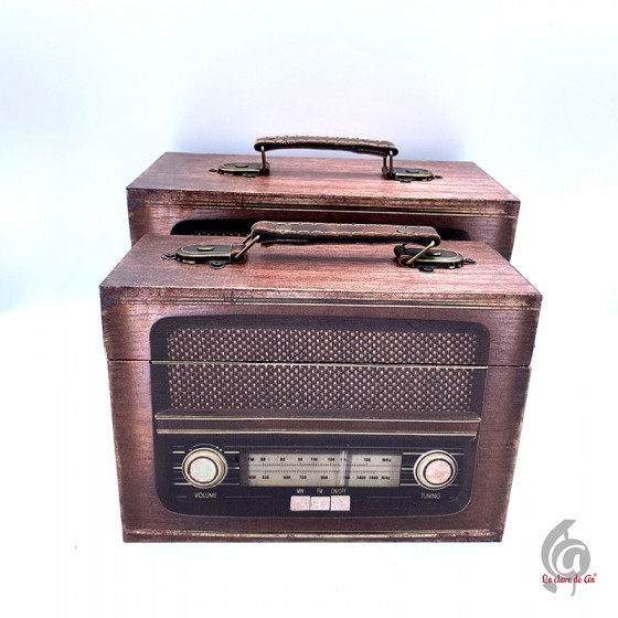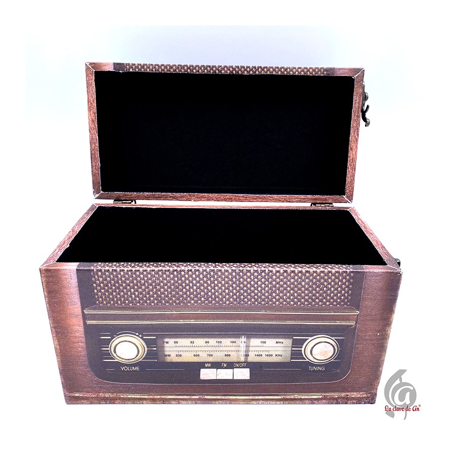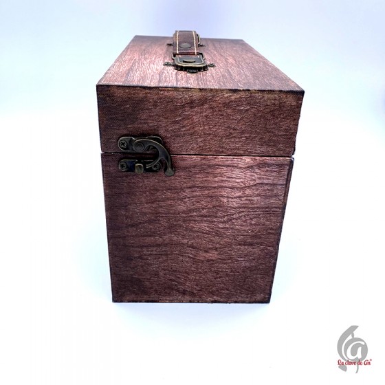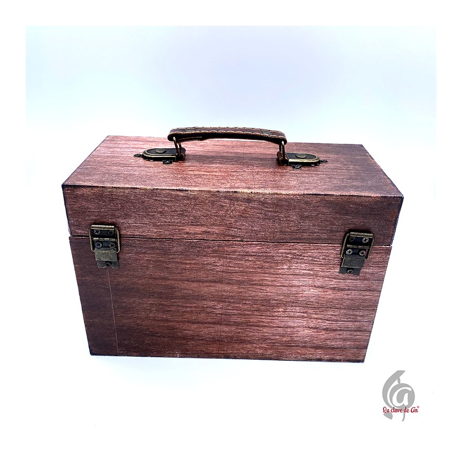 Caja de almacenamiento forrada con asa y cierre lateral.